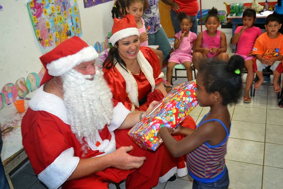 Outra atividade que ocorreu na Carris neste fim de ano, foi a entrega de brinquedos nas creches que recebem apoio da empresa. A Unidade de Atendimento Psicossocial da Carris, convidou os colaboradores a doarem um brinquedo para uma das crianças das creches atendidas. No dia 24 o Papai e a Mamãe Noel foram entregar os presentes em um clima de muita alegria e emoção. A seguir, postamos uma foto da visita do casal Noel às crianças:
